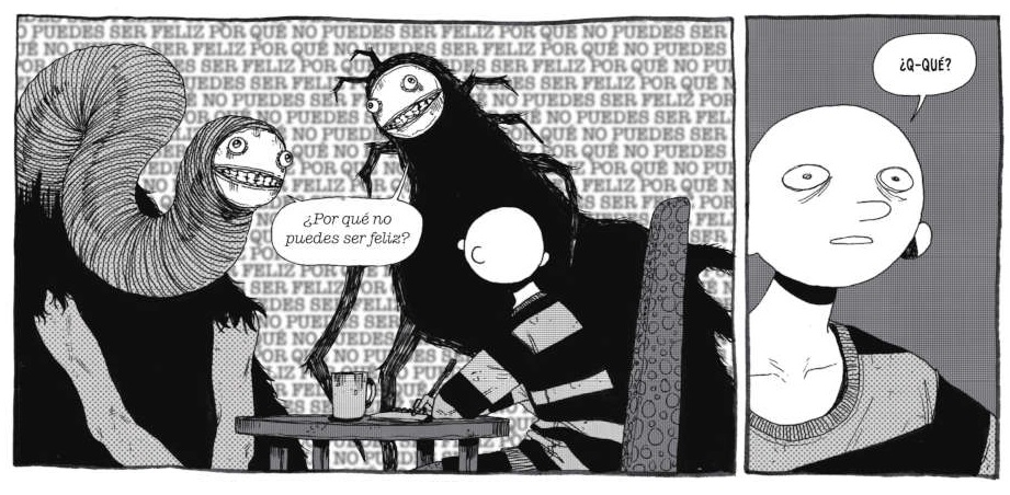 Todo ello se muestra aquí con un “savoir faire” gráfico, en un collage de estilos que refuerzan, a la par que revelan, cada momento que vive la protagonista en el relato. Así el viaje propuesto gana empaque conforme avanza. Haciendo partícipe al lector del camino, rompiendo acertadamente la cuarta pared en ocasiones. Mientras tanto, pensamientos, hechos y reflexiones se conjugan en una amalgama dura e íntima. Como una catarsis que sirve también para auto explicarse. Es la forma de darse sentido, tanto a la obra como a sí misma. Eso es lo que hace poderoso a este tebeo: el poder poner en viñetas algo tan complejo como la ansiedad, describirla desde lo íntimo y lograr transmitirlo a quien lo lea. Como un viaje iniciático de autoconocimiento de la autora a la que los lectores nos invitamos al abrir el volumen.