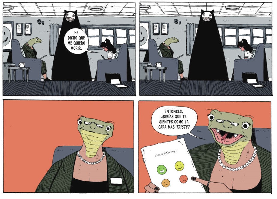 Tratándose de hechos tan complejos y profundos, las traducciones del original de Image a otras lenguas son elementos esenciales para que la obra funcione plenamente. En el caso de Norma, las traducciones al castellano de Gema Moraleda y al catalán de Laura Obradors (“S’hi està molt sola al centre de la terra”) son trabajos notables que están a la altura del original en inglés, capturando la esencia de cada texto y lográndolo transmitir y conectar en ambos idiomas. En ambos casos, las 192 páginas de “Se está muy sola en el centro de la tierra” es un tebeo necesario y valiente para dar a conocer la salud mental de forma emotiva y, a la vez, precisas. Sin moralinas y con la capacidad de hablar con lucidez de las zonas oscuras que albergan en muchos seres humanos. Como una catarsis reveladora.