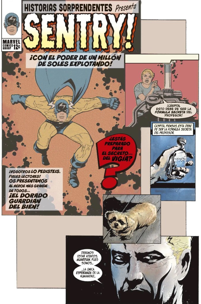 Hay obras que nacen con la vocación de ser un experimento y terminan convirtiéndose en una piedra angular del mito superheroico. Hay personajes que aparecen como un destello fugaz, concebidos casi como un capricho editorial, y se elevan inmediatamente al rango de símbolo. Y luego está «El Vigía» («The Sentry»), el superhéroe que fue el más grande de todos y que nadie recuerda. Con esa paradoja comienza una de las historias más inquietantes, adultas y fascinantes jamás publicadas por Marvel. Una miniserie que unió el thriller psicológico con la tradición de los cómics de superhéroes y que, a día de hoy, sigue siendo tan deslumbrante como perturbadora. Este tomo vuelve a editarse ahora en la línea Must Have por parte de Panini Comics. No solo recopila los cinco números originales de la miniserie, sino que añade los one-shots posteriores con los héroes principales de la «casa de las ideas» y el enfrentamiento con El Vacío. También nos devuelve a un tiempo muy concreto de la historia del cómic norteamericano. El momento en el que Marvel, a punto de tocar fondo, apostó por el riesgo, por un tono más adulto y oscuro, y encontró en la línea Marvel Knights. Un renacimiento que salvaría su futuro.