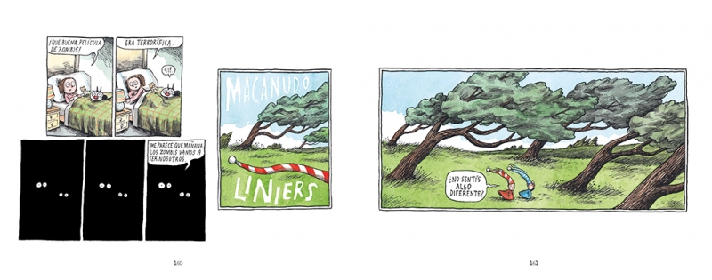 Bajo esa frase tan propia del imaginario que ha construido en las últimas décadas Liniers se engloba este volumen, que recopila muchas de las tiras que el autor argentino ha ido publicando en los últimos años. Unas tiras que, vistas en conjunto, suponen una suerte de antídoto frente a este mundo de urgencias e intereses que nos envuelve cada día. Donde todo es para ya, Liniers ofrece en pequeñas capsulas de pocas viñetas auténticas ventanas de inmensidad creativa. Esas que salen del “otro lado” que crea con sus personajes, que discurren entre lo fantástico, lo tierno y lo filosófico. Que parecen ligeras, pero rezuman ingenio y potencia conceptual. De las que hacen sonreír, pero también reflexionar.