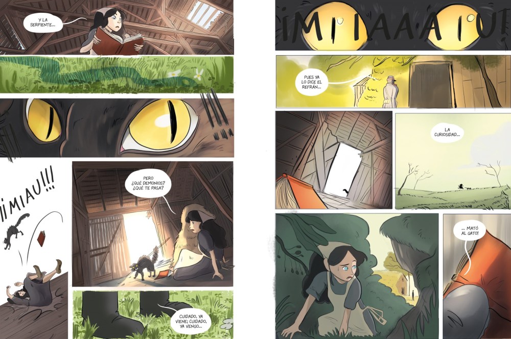 Este comic es, en el fondo, un relato sobre los lugares donde la realidad se rompe un poco para dejar pasar la fantasía. Un cuento sobre la pérdida, el miedo y la transformación. Pero también es una carta de amor al folclore y a las historias que se contaban junto al fuego. Los Etxeberria escriben con delicadeza, sin subrayar ni dramatizar en exceso. Su guion tiene el pulso del relato oral. Pausado, lleno de silencios, con una musicalidad que recuerda a los cuentos populares de cualquier pueblo.