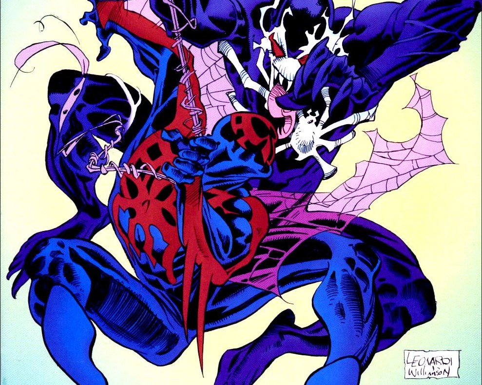 El tomo arranca con Miguel fuera de su entorno, en medio de ninguna parte, sin los rascacielos que solían sostenerlo. Es un Spiderman desprovisto de su ciudad, sin su telaraña simbólica, enfrentándose a amenazas que no entiende del todo. Es la versión más frágil y humana del héroe. Pero cuando por fin regresa a Nueva York, descubre que el mundo ya no le pertenece. El Doctor Muerte se ha convertido en amo del planeta, la corrupción manda, y la esperanza es un artículo de lujo. En ese contexto irrumpe el monstruo. Veneno 2099, una criatura tan brutal que convierte el miedo en algo físico. No es solo una versión futurista del simbionte. Es un recordatorio de lo que pasa cuando el poder se desprende de toda empatía. Su encuentro con Miguel no es solo una batalla; es una pesadilla moral.
