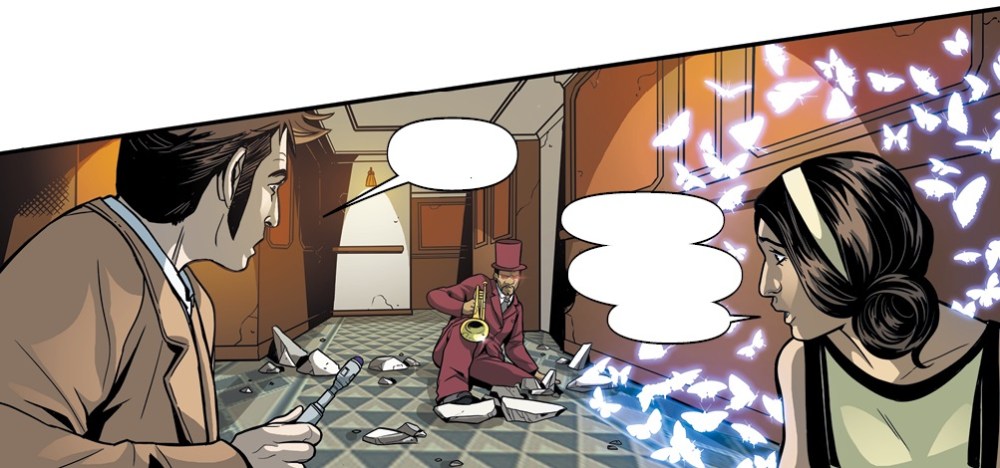Desde su primer arco argumental, (“Revoluciones de Terror”) Abadzis se ha preocupado de dotar consistencia a la serie, así como a las companions que coprotagonizan la cabecera del Doctor encarnado por Tennant: Gabby Gonzalez y Cindy Wu. Algo que sigue manteniendo en estas páginas, donde además ya se permite con acierto hacer referencias a la misma serie de cómics. Algo que igual puede parecer una barrera para quien se acerque a este volumen como primera toma de contacto con los cómics del Doctor Who. Si bien no son esenciales para disfrutar de estas aventuras, para quien siga la serie le aportará una mayor consistencia a la lectura. Del mismo modo, las referencias a la serie de televisión utilizadas son más que efectivas y seguro serán celebradas por cualquier whovian que se acerque al cómic.