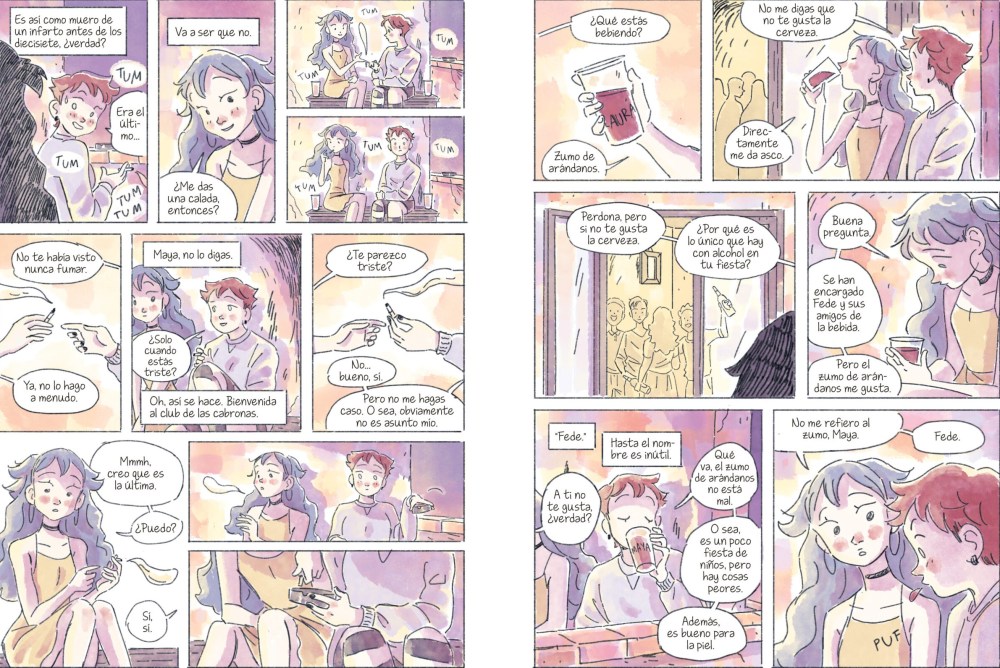 El guion de Beltramini, por su parte, hace algo precioso. Trata la adolescencia no como un territorio menor, sino como un paisaje donde las emociones importan, duelen y transforman. No infantiliza, no moraliza, no intenta enseñar desde un pulpito. Más bien, acompaña. Esa es quizá la mayor virtud del comic. Su capacidad de acompañar, como lo haría un amigo que no tiene todas las respuestas, pero que está ahí, sin soltar tu mano. Lo maravilloso es que, aunque parece dirigido a jóvenes, el cómic habla igual de bien a quien ha vivido más. Porque en sus historias hay un recordatorio universal. Todos hemos sido huéspedes de nuestro propio hotel alguna vez (algunos lo llamaríamos mundo). Todos hemos tenido un cuarto al que no queríamos entrar o del que no sabíamos cómo salir.