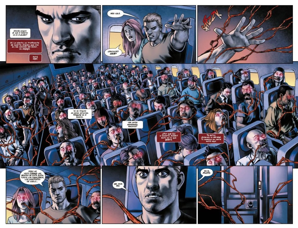 Soule, además, tiene la inteligencia de no convertir esto en un festival gore sin propósito. Sí, hay violencia. Sí, hay vísceras. Sí, hay brutalidad simbiótica del nivel que Marvel suele reservar para las etiquetas Red Band. Pero la clave está en el tono psicológico. Eddie no es simplemente un hombre con un monstruo dentro. Es un hombre que empieza a preguntarse si siempre fue el monstruo. Si Veneno fue una excusa. Si Matanza es un espejo. Y ese terror, ese terror íntimo, ese que más duele, es el que da a este tomo su verdadera identidad. Porque, en el fondo, esta serie no trata sobre asesinos en serie. Ni sobre simbiontes. Ni sobre batallas sangrientas. Trata de alguien que intenta mantener algo dentro de sí encerrado con las manos desnudas. Sabes que va a fallar. Todos lo sabemos. Incluso él lo sabe. Soule solo está mostrando el proceso, paso a paso, deslizándose hacia una pérdida inevitable de control.