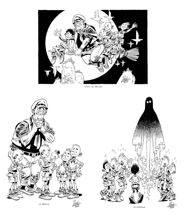 No hay pues un planteamiento, nudo y desenlace en estas páginas. Pero si un discurso potente. El que queda impreso en la tinta de cada ilustración. Donde aparecen viejos conocidos de obras pasadas, junto al autor, en diferentes situaciones. Todas contando o representando algo. Ya sea una idea o una posición vital. Una actitud que refleja que el arte, bien entendido, es expresarse. Dejar plasmado un momento, concepto o sensación. Dispuesto a ser descubierto por el lector cuando vea cada una de las páginas de este museo en formato libro. Porque abrir “Cien y pico dibujos sin fundamento” es una suerte de visita a un museo de ilustraciones de Carlos Giménez hecho libro. Uno al que volver tantas veces como se quiera, merece más de una visita por lo que alberga.
