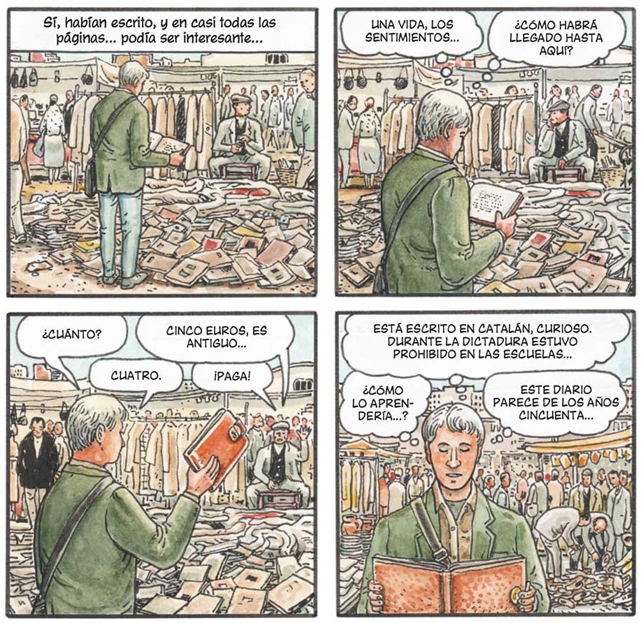 Así se componen las 128 páginas de “El diario de la señorita Litgi”. Un tebeo que sabe a verdad recuperada del olvido, merecedora de ser contada sin más añadidos que el respeto y la fidelidad al texto del que nacen, a los sentimientos de quien lo escribió. Intimidades ilustradas que llegan a conmover por todo lo que encierran los trazos de sus viñetas y letras. Intimidades escondidas en las páginas de un libro perdido entre “los encantes” que han dado lugar a un tebeo fascinante, por arriesgado en concepto y seductor en su resultado final.