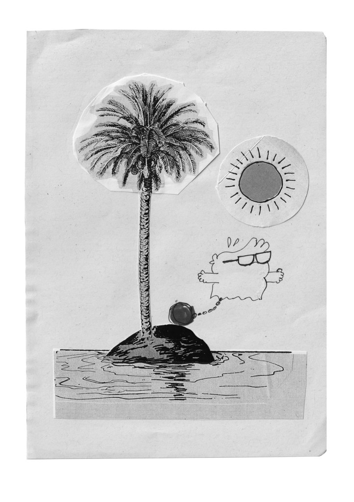 Otro elemento fascinante es la manera en que Montatore combina el relato visual con la narrativa textual. No se limita a mostrar o contar. Mezcla ambos planos para crear un lenguaje propio, donde los textos mecanografiados y los collages dialogan con las imágenes, donde la tipografía, el tachón y la mancha forman parte de la historia, de la memoria, de la pregunta sobre la vida y la muerte. Cada página es una composición que respira, que siente, que titubea; y ese titubeo refuerza la sensación de humanidad, de imperfección y de vida que recorre el libro.