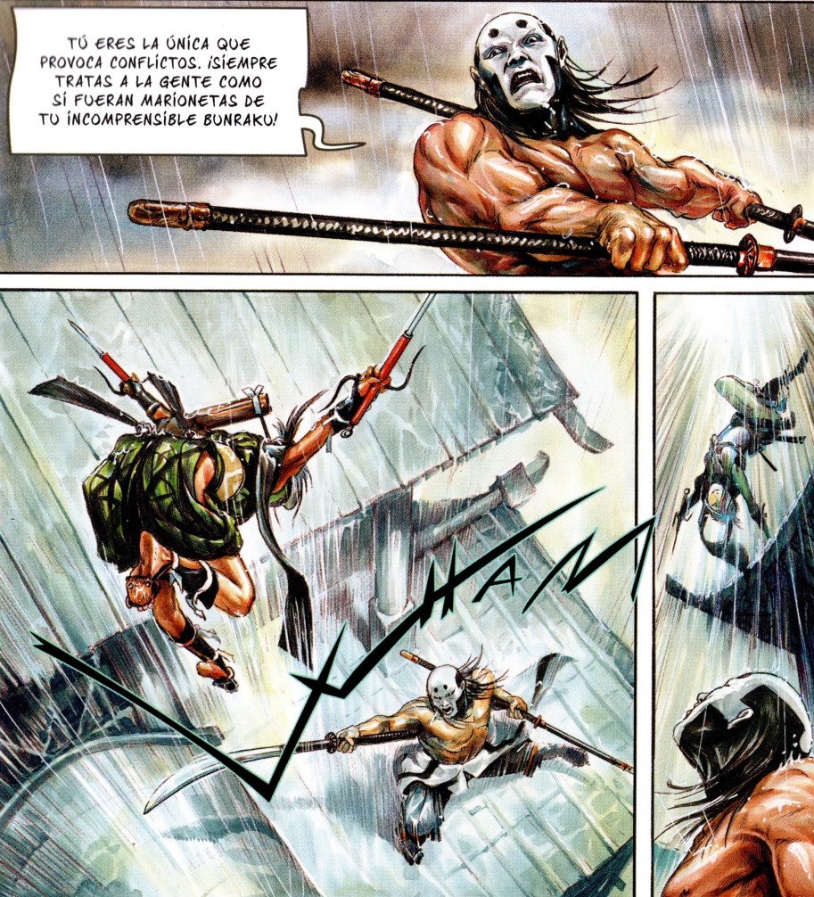 Uno de los grandes temas de este segundo tomo es la identidad. La máscara deja de ser un simple objeto para convertirse en una idea poderosa y terrible. Aquello que utilizamos para sobrevivir puede acabar definiéndonos por completo. Nobu Fudo ya no actúa solo por voluntad propia, sino por inercia, por deber, por una violencia interior que se ha normalizado. Tenuta no idealiza esta transformación; la muestra como algo profundamente trágico. Fudo es fuerte, sí, pero también está solo, aislado, condenado a cargar con un legado que no ha elegido del todo. Tenuta alterna escenas de acción brutal con momentos más introspectivos, recuerdos del pasado y fragmentos casi oníricos que refuerzan la atmósfera de fatalismo. La historia avanza con decisión hacia un clímax en el que todas las piezas encajan, aunque no necesariamente de la forma que el lector desearía. No todo queda cerrado de manera definitiva, pero esa sensación de historia abierta, de leyenda inacabada, encaja perfectamente con el tono del conjunto.