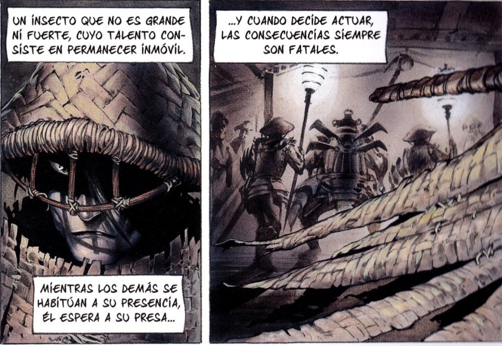 Publicada por Tengu Ediciones, con traducción de Gabriel Álvarez en una edición integral de gran formato, tapa dura y 200 páginas a color, conteniendo los cuatro álbumnes de la serie publicados en el mercado franco belga entre 2006 y 2010: “La ville qui parle au ciel”, “Comme feuilles au vent”, “ Le trait parfait” y “La fleur cachée de l’abomination”. Se presenta así en su totalidad como un objeto contundente, serio, casi solemne. No es un comic ligero ni por peso ni por intenciones. Es un volumen que exige ser leído con tiempo, con paciencia y con una cierta disposición a perderse. Porque perderse es parte fundamental de la experiencia. Aquí no hay concesiones narrativas ni explicaciones tranquilizadoras. Todo se construye desde la carencia: de recuerdos, de información, de certezas.