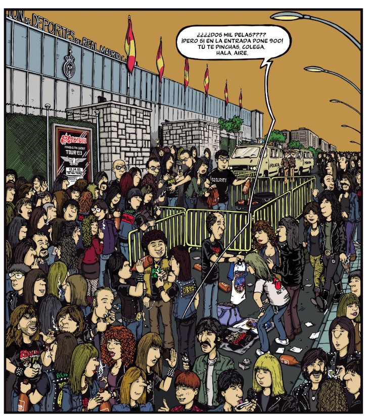 Como muestra, la cantidad de detalles en atrezo de muchas de sus viñetas, donde se descubre la cartelería de la época, así como objetos, que nos sitúan en cada momento histórico donde se desarrolla el relato. Que dan más sensación de veracidad al conjunto. Del mismo modo que queda reflejado lo que supusieron conciertos como los que ofrecieron Saxon o The Rolling Stones. Auténticos hitos que marcaron un antes y un después. Cada uno a su nivel, pero llegando con igual intensidad a quien era su público natural.