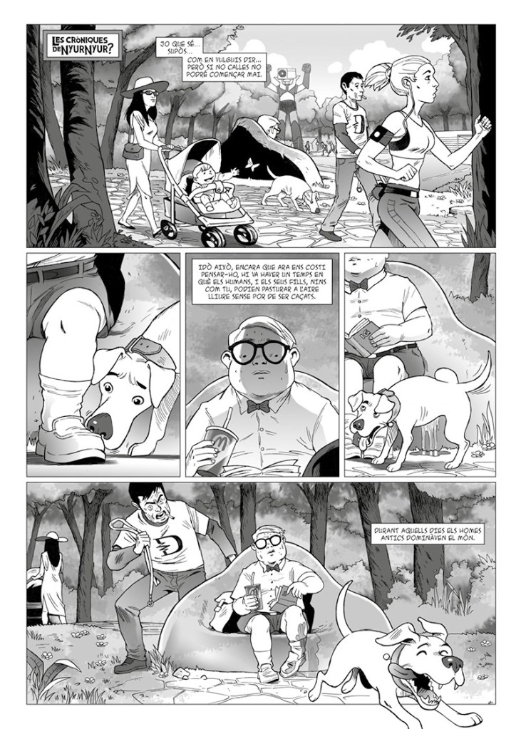 Nyur Nyur no es una heroína tradicional. No lidera rebeliones ni dispara balas salvadoras. Su arma es el lenguaje. Su resistencia es la memoria. Eso convierte a este cómic en algo mucho más grande que una historia postapocalíptica. Lo convierte en una reflexión feroz sobre el poder de los relatos, sobre quién los cuenta, cómo se deforman y por qué, al final, son lo único que queda cuando todo lo demás se ha perdido. Las crónicas que protagonizan tres personajes de lo más variopinto funcionan como relatos internos, como fragmentos de un mundo que se niega a desaparecer del todo. No son historias cerradas ni tranquilizadoras. Son restos, piezas incompletas, mitos a medio formar. A veces parecen recuerdos, otras veces advertencias, otras directamente mentiras necesarias. Porque en un mundo roto, la verdad ya no importa tanto como la necesidad de creer en algo. El arranque del comic es deliberadamente hostil. No te explica nada. No te contextualiza. No te da la bienvenida. Te arroja dentro y espera que sobrevivas. Esa sensación de desorientación no es un fallo: es una experiencia diseñada. El lector se convierte en otro superviviente más, obligado a aprender las reglas del mundo sobre la marcha, aceptando que algunas nunca serán explicadas del todo. Como en la vida real, después del desastre.