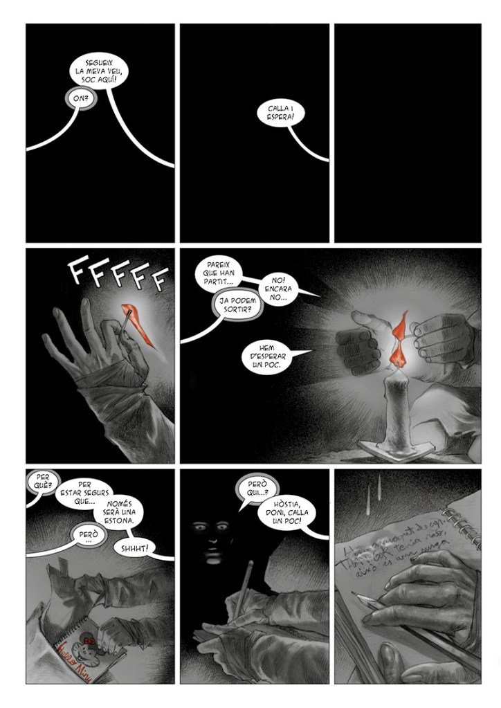 Uno de los mayores aciertos del comic es su capacidad para hacerte sentir que estás leyendo algo prohibido, algo que no estaba destinado a sobrevivir. Como si cada página fuera una reliquia rescatada del olvido. Hay una sensación constante de precariedad, de que el relato podría romperse en cualquier momento. Y eso le da una fuerza brutal. Este no es un cómic optimista. Se mueve en un terreno mucho más incómodo. El de la resistencia mínima, el de seguir adelante no porque haya esperanza, sino porque rendirse significaría aceptar el silencio definitivo. Aquí la humanidad no se salva. Se prolonga. A base de palabras, recuerdos deformados y relatos transmitidos en la oscuridad.