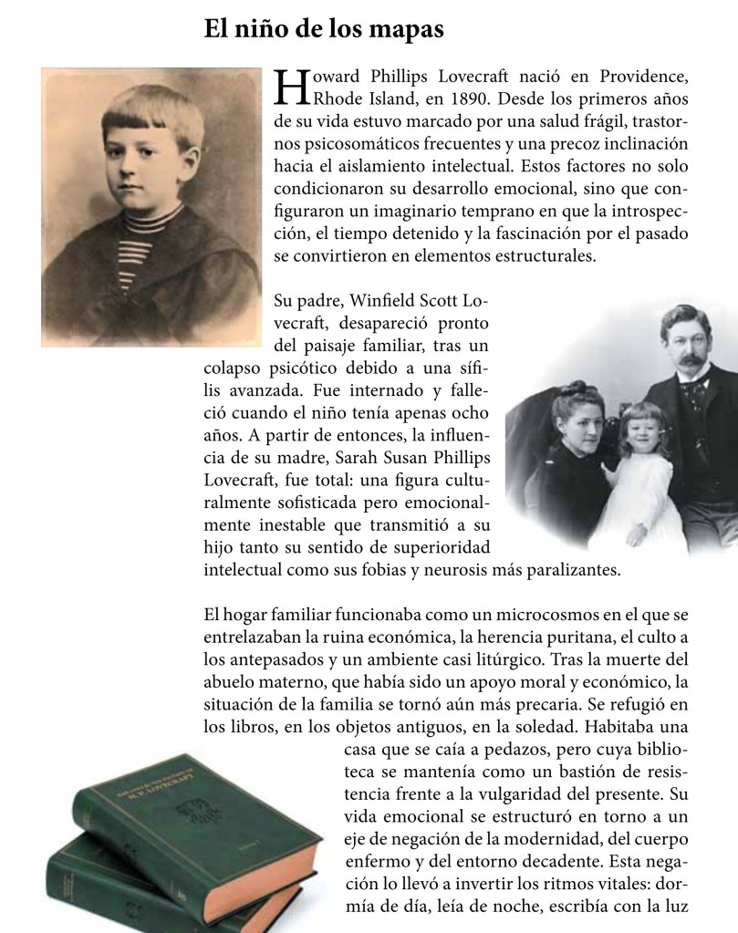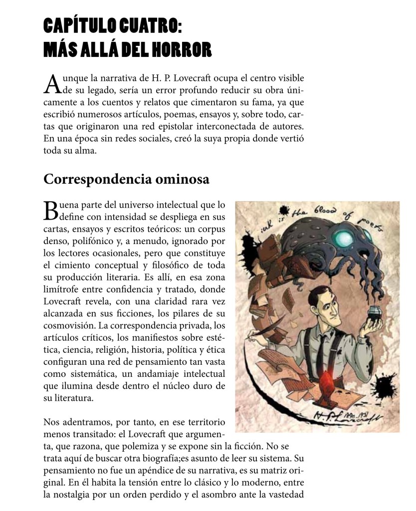 Uno de los grandes aciertos de este primer volumen es que no cae en la tentación de convertir a Lovecraft en una figura intocable. López-Guisado lo sitúa en su contexto histórico, intelectual y cultural, mostrando cómo su visión del mundo surge de una combinación explosiva de ciencia, filosofía, literatura pulp y una profunda angustia personal. Lovecraft aparece aquí como un autor lleno de contradicciones. Brillante e imaginativo, pero también limitado, obsesivo y profundamente marcado por sus miedos. Esta mirada equilibrada evita tanto la historia como el ajuste de cuentas simplista.