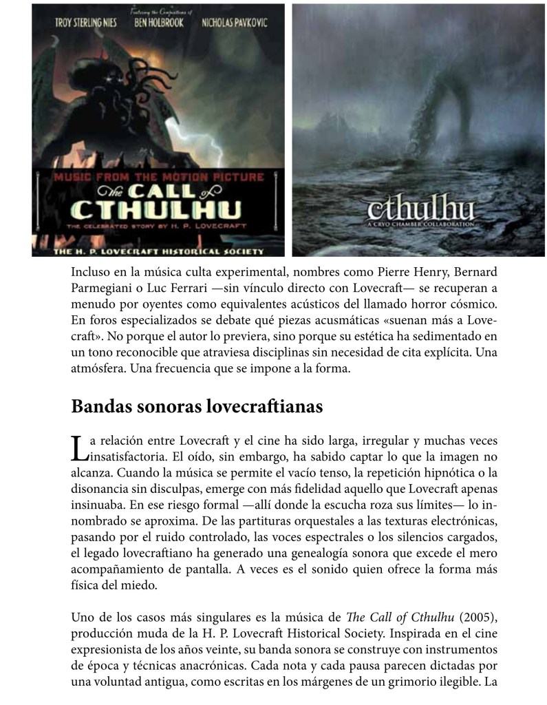 Además, el libro invita constantemente a la reflexión. Más allá de enumerar influencias, plantea preguntas incómodas: ¿por qué seguimos necesitando el horror cósmico? ¿Qué dice de nuestra época esta obsesión por la insignificancia humana? ¿Hasta qué punto el miedo lovecraftiano encaja con una sociedad saturada de información, pero carente de certezas? Estas cuestiones no se responden de forma cerrada, pero quedan flotando, como ecos inquietantes que acompañan al lector mucho después de cerrar el libro.