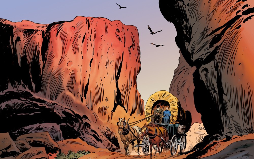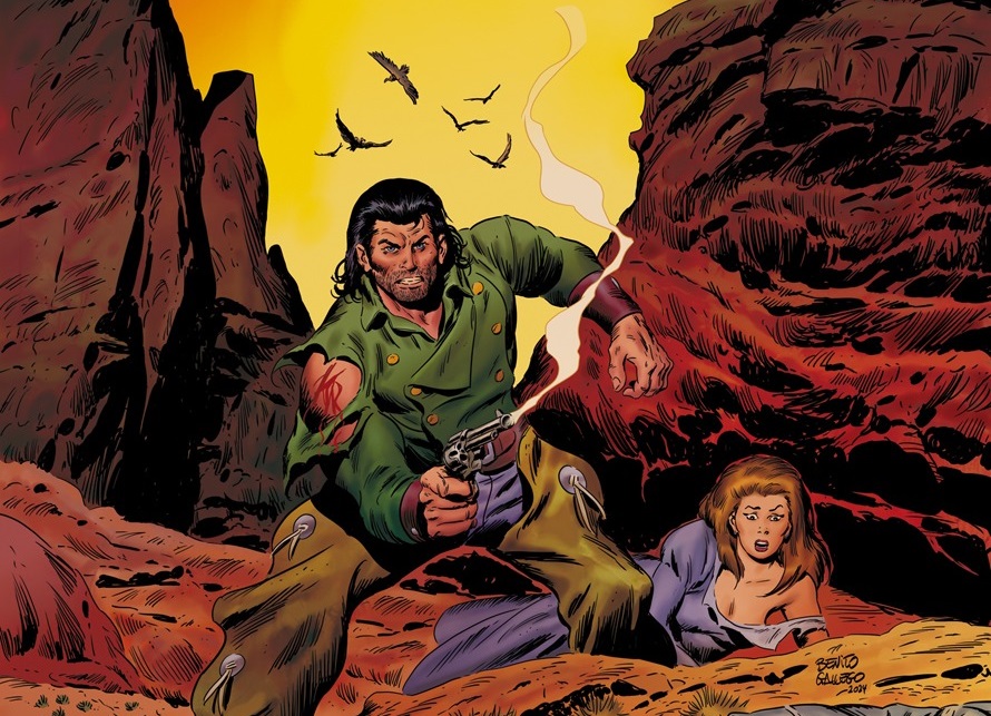 Precisamente en el género de frontera por antonomasia nos detenemos, pues el tebeo que hoy nos ocupa adapta un relato del oeste de Howard. Nos referimos a “Santuario de Buitres” (“‘Vultures’ Sanctuary’”), cuya adaptación al cómic han llevado a cabo Ángel García Nieto y Benito Gallego, que vio la luz el pasado 2025 de la mano de Cartem.