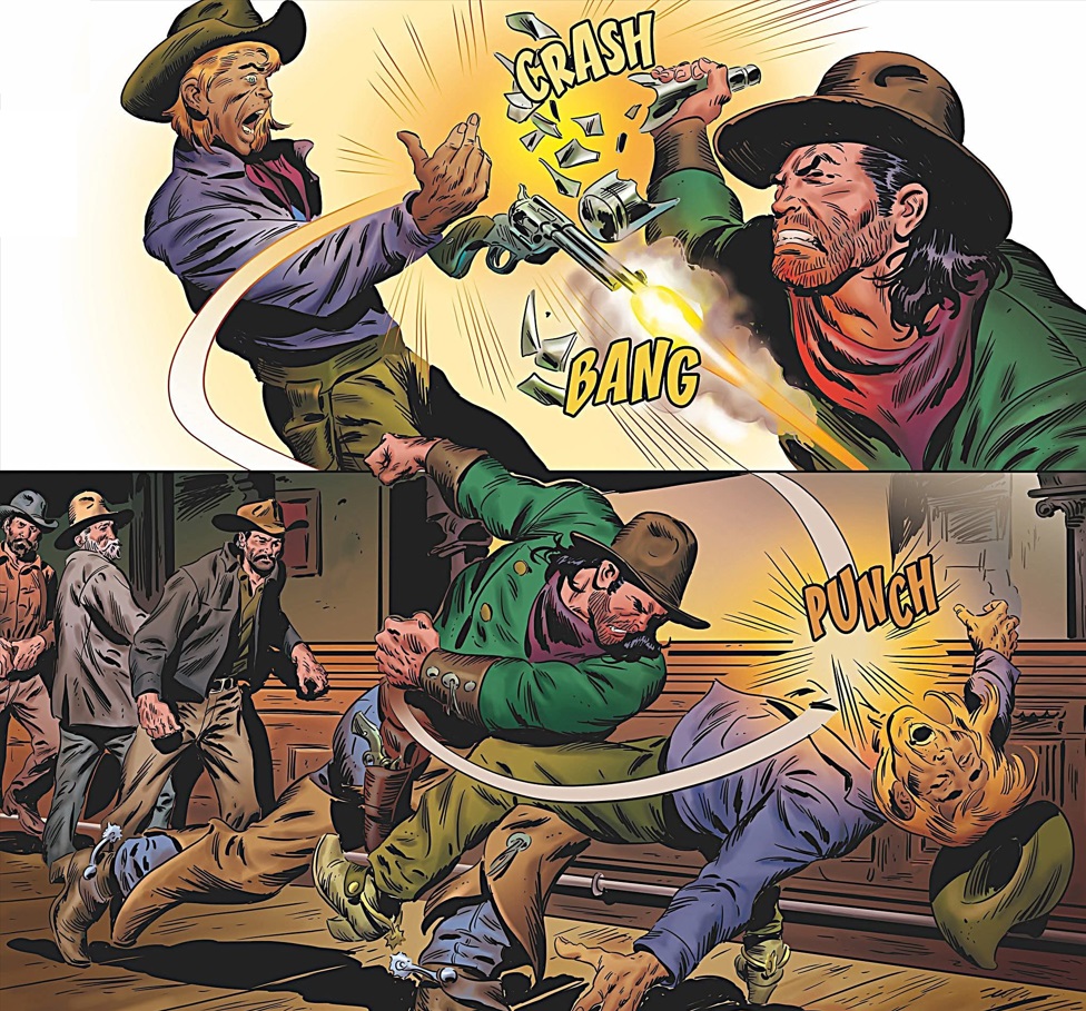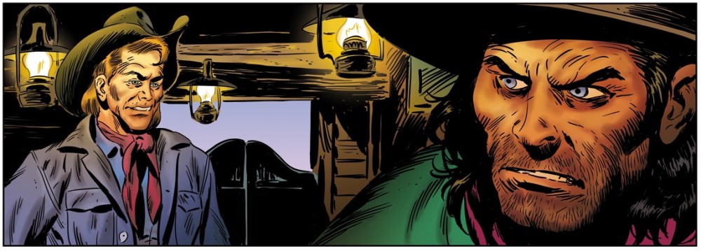 Esa fuerza narrativa, tan básica y a la vez tan efectiva, es la que han sabido mantener en la adaptación al cómic Ángel García Nieto y Benito Gallego. En primer lugar, mediante el guion de García Nieto («Conan de Cimmeria«) que va a la esencia, dejando lo primordial del relato con un tono y ritmo que aumenta la tensión e interés de lo contado. Seco como un buen western, del que se sirven de todos los tópicos del género, en sus páginas en ocasiones parece oírse a Ennio Morricone. Señal del oficio con que se ha encarado esta adaptación.