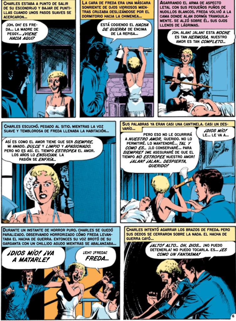 Uno de los aspectos más llamativos de este cuarto volumen es la variedad de tonos. Hay historias que apuestan por la violencia más explícita, sin rodeos ni concesiones, donde el impacto visual es inmediato y demoledor. Otras, en cambio, se apoyan en el suspense psicológico, en la anticipación, en el malestar creciente, como si estuviéramos ante un thriller clásico cocinado a fuego lento. Esta alternancia mantiene la lectura fresca y evita que el lector caiga en la monotonía. El eje temático sigue siendo, como siempre, la naturaleza humana. EC Comics entendía que el verdadero horror no venía de monstruos sobrenaturales, sino de personas corrientes empujadas por sus defectos: la avaricia, la lujuria, la ira, la envidia o el orgullo. Los siete pecados capitales atraviesan estas historias como un veneno silencioso que termina por estallar en forma de castigos terribles. Aquí no hay redención: quien se desvía del camino acaba pagando un precio alto, a menudo irónico y cruel.