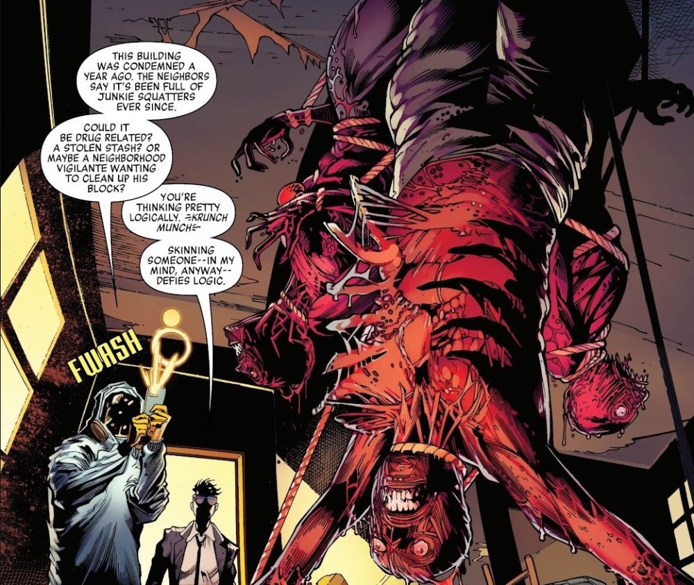 En el apartado gráfico, Marcelo Ferreira firma un trabajo muy sólido y coherente. Su estilo dinámico y claro es ideal para una historia cargada de acción, pero también sabe oscurecerse cuando la historia lo exige. Las escenas de violencia son explícitas, directas y sin censura, pero nunca confusas. Ferreira controla bien el ritmo y sabe cuándo acelerar o cuándo detenerse para generar inquietud. El hecho de que sea el único dibujante de la miniserie aporta una continuidad que se agradece enormemente, especialmente en un relato tan corto y concentrado. El color de Frank D’Armata y Jay Leisten refuerza el tono oscuro y opresivo del conjunto, jugando con sombras, contrastes y una paleta que potencia la sensación de peligro constante. No hay intención de suavizar nada. Este es un cómic áspero, agresivo y orgulloso de serlo. La violencia no es gratuita, sino una herramienta más al servicio de la historia.