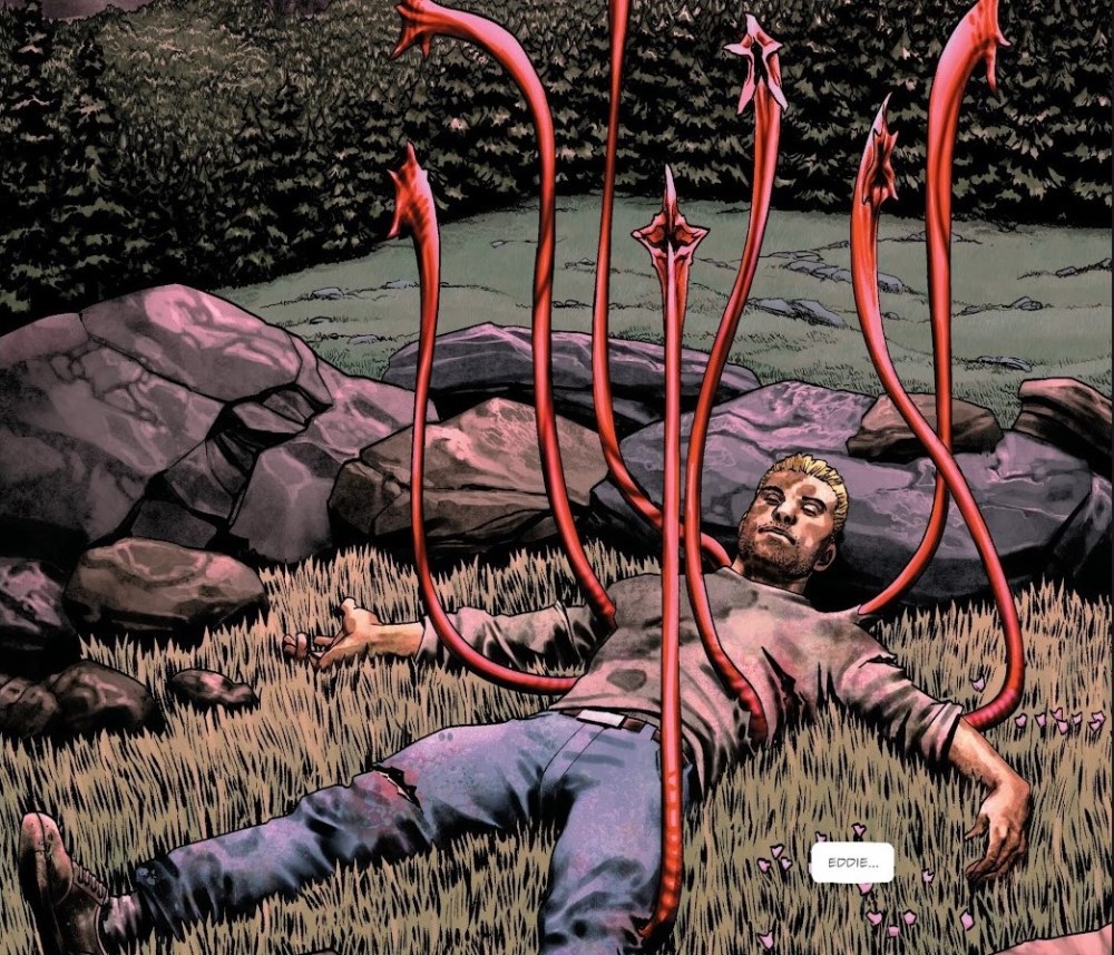 El gran antagonista de este bloque es Muse, un villano que funciona como catalizador del horror. Muse no es un asesino impulsivo, sino un artista del crimen, alguien que entiende la violencia como lenguaje. Cada vez que aparece, el cómic se vuelve más interesante, más peligroso, porque su historia avanza y sus actos tienen consecuencias. Hay una escena clave en la que se le ve “crear” que resulta profundamente perturbadora, y que demuestra que el verdadero terror no siempre necesita sangre explícita. Paradójicamente, Muse acaba eclipsando al propio Eddie en términos de avance narrativo.