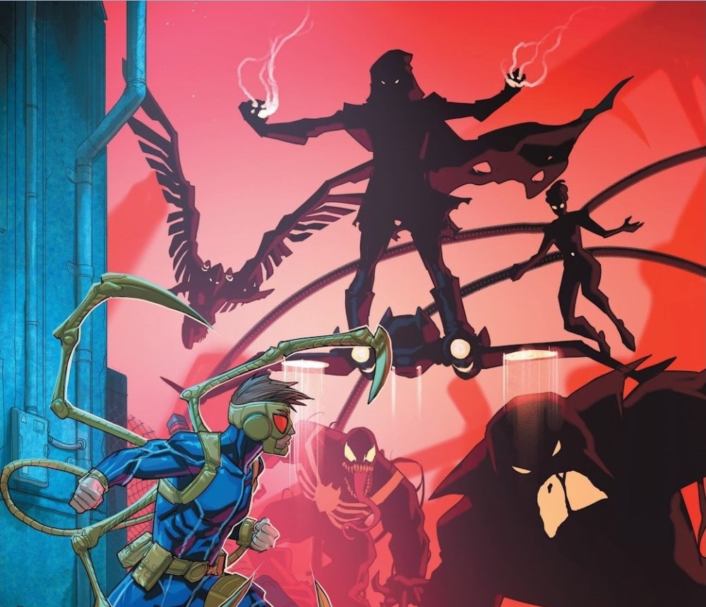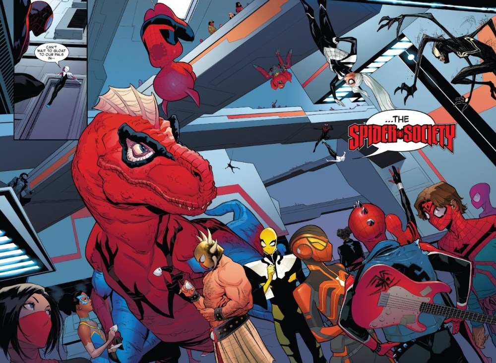 A lo largo de estos cuatro números, asistimos a la formación improvisada de la Sociedad, a su primera misión y, casi sin tiempo para celebraciones, a su primera gran derrota. Personajes icónicos como Miles Morales, Spider-Gwen, Miguel O’Hara (Spider-Man 2099) o Jessica Drew conviven con variantes menos conocidas, pero igual de interesantes. Esta mezcla de nombres populares y secundarios no es casual. Segura construye la historia para que el foco no recaiga siempre en los mismos, permitiendo que personajes menos explotados tengan momentos de protagonismo, riesgo real y desarrollo propio. La amenaza central que recorre la serie es la Escuadrón Siniestro, un grupo de villanos diseñado no solo para ser letal, sino para romper la idea de que pertenecer al Spiderverso implica supervivencia garantizada. A lo largo de los números, la serie se vuelve progresivamente más oscura, más violenta y más consciente de que esta no es una aventura ligera: hay pérdidas, traiciones y decisiones que pesan. El cuarto número cierra el arco inicial dejando a la Sociedad diezmada, cuestionando si realmente es posible reconstruir algo a partir de un fracaso tan absoluto.