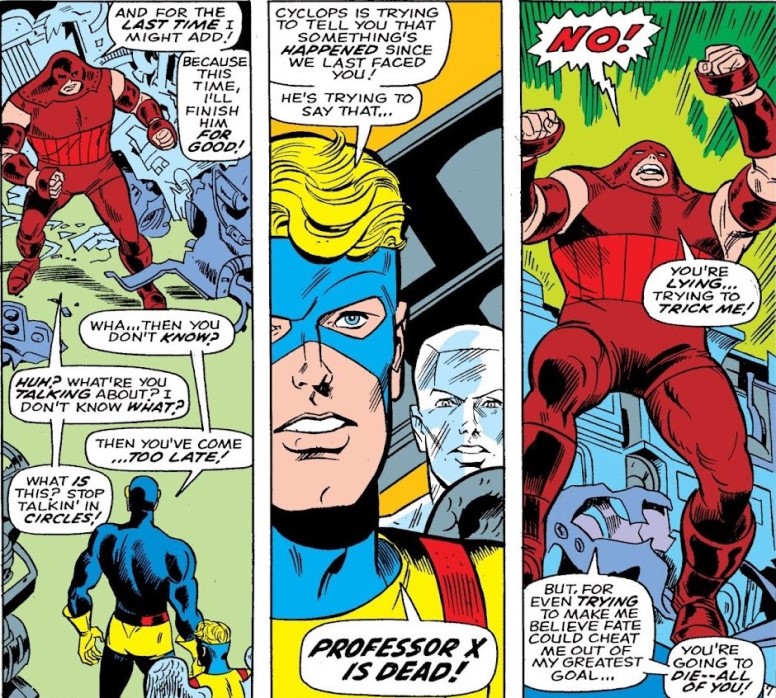 El episodio más logrado del volumen sigue siendo el regreso del Juggernaut. Una historia que recuerda brevemente el potencial de la Patrulla-X incluso en sus horas bajas. Don Heck, a menudo señalado como uno de los puntos débiles de esta etapa, realiza aquí un trabajo eficaz, especialmente a la hora de transmitir la fuerza bruta y la destrucción asociadas al personaje. Es un capítulo que funciona por sí mismo y que aporta algo de tensión y espectacularidad a un conjunto generalmente contenido.