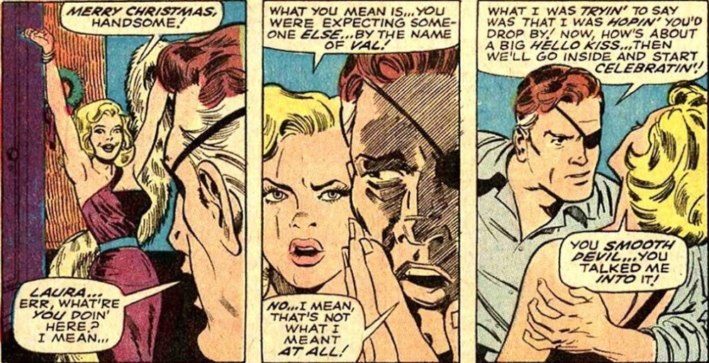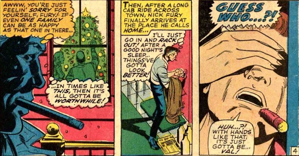 Pero ya era tarde: El número de episodios restantes es escaso y la sensación de cancelación inminente pesa sobre cada página. Gary Friedrich vuelve para los últimos capítulos y lo hace con munición, pero sin puntería. Las tramas se vuelven confusas, mal explicadas, a veces directamente contradictorias. El episodio del Superpatriota, dibujado por Herb Trimpe, es especialmente revelador. Introduce un subtexto político que, leído hoy, resulta inquietantemente vigente. El populismo, la manipulación del discurso patriótico, el miedo al cambio… Todo está ahí, aunque expresado de forma torpe y poco afinada. Hay ideas interesantes, pero la trama no sabe sostenerlas. Entonces llega el punto de no retorno: la muerte de Nick Furia. Un final seco, abrupto, casi anticlimático. No hay épica, no hay despedida solemne. Simplemente ocurre. Hoy sabemos que esta muerte tenía los días contados, pero leída en su contexto es devastadora. Es la confirmación de que la serie ha llegado a un callejón sin salida.