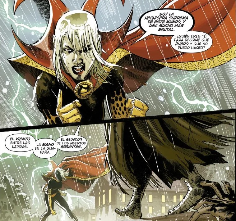 Por otro lado, algo que llama la atención en el tebeo es la decisión de Clea de buscar a quienes han muerto y regresado. Su encuentro con el Caballero Luna no es un simple cameo, sino una conversación cargada de significado. Hablar de resurrección con alguien que ha cruzado esa frontera tantas veces la obliga a plantearse preguntas incómodas: ¿qué se pierde al volver?, ¿qué precio se paga?, ¿es realmente la misma persona la que regresa? Esta escena amplía el alcance temático del cómic y prepara el terreno para revelaciones clave sobre el destino de nuestro querido doctor. El arco se cierra con una revelación potente relacionada con el Cosechador y su vínculo con la Muerte, dejando claro que la historia apenas está comenzando. No hay soluciones fáciles ni finales reconfortantes. Lo que hay es una sensación persistente de amenaza, de cuenta atrás silenciosa, de que cada decisión de Clea está empujando al universo mágico hacia un punto de no retorno.