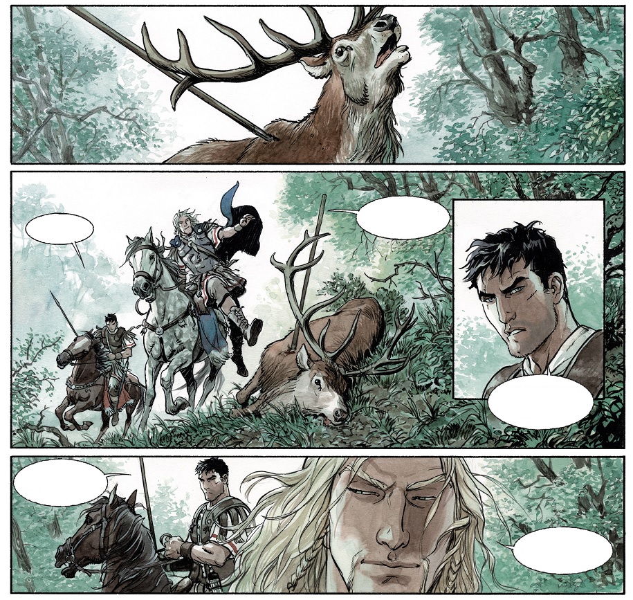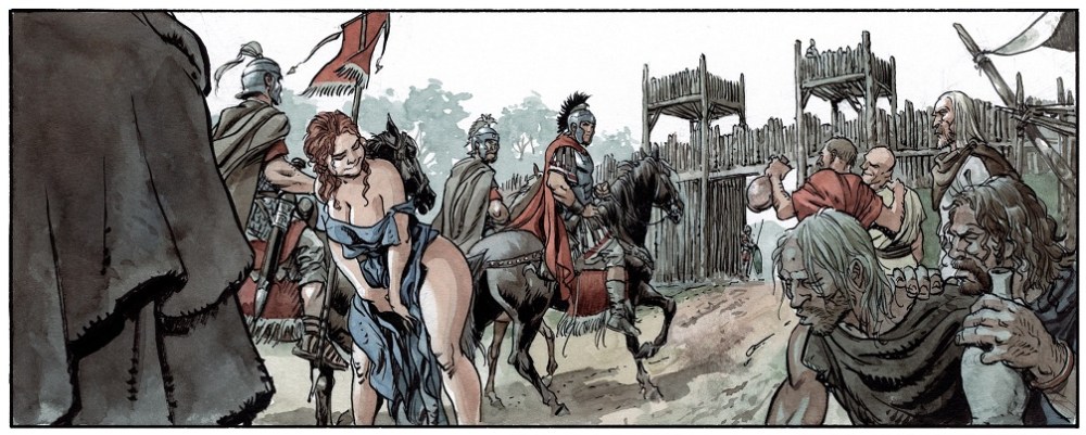 Con estos elementos la saga de Enrico Marini comienza a volar alto en su tercera entrega. Si tras la presentación del libro I, el desarrollo comenzó a ganar enteros en el libro II, en su continuación se fortalece de una trama fluida llena de momentos de intriga. Bien sazonados con violencia y sexo. Con intrigas y desconfianzas. Con pasiones prohibidas. Con recelos entre quienes fueron leales como hermanos. Con destinos militares que saben a venganza…. Como si las víboras fueran dejando su veneno tras su reptar. Así discurre este cómic, donde conforme se avanza en su trama, más latente están los peligros para los protagonistas. Símbolos ambos de lo que fue el Imperio Romano de la época de Augusto y, a la vez, antagónicos. Pues Marco no deja de ser la imagen del orgulloso patricio de cuna, mientras que Arminio es un bárbaro romanizado, pero que no renuncia a sus orígenes.