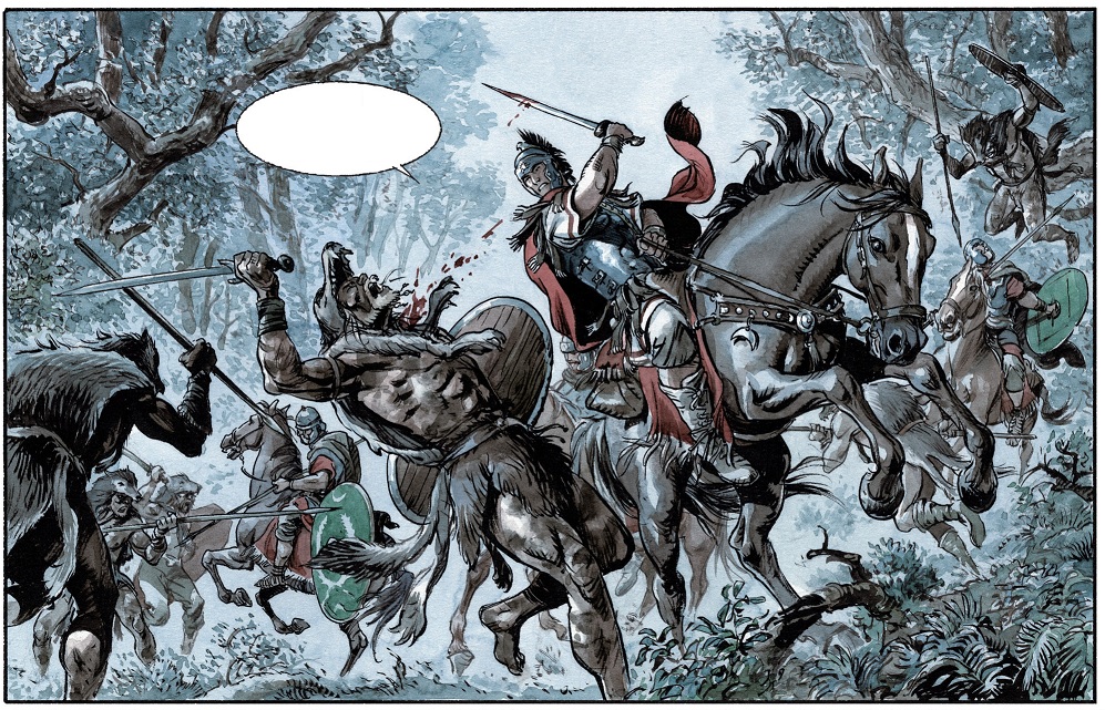 Así pues, lo que depara el tercer volumen de “Las Águilas de Roma” no será un reencuentro fraternal entre los antaño hermanos de sangre. No hay que olvidar que Arminio es hijo de Sigmar, líder querusco que se vio obligado a dejar a su hijo como rehén de Roma tras su derrota contra el Imperio. Y por mucha educación romana que haya recibido el joven bárbaro, sigue siendo hijo de su pueblo. Uno que está decidido a levantarse contra el invasor. Solo necesitan un líder que los aglutine y comande…