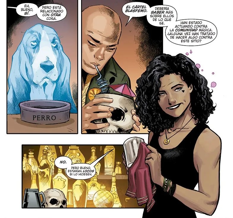 El Cártel Blasfemo termina de definirse como un antagonista singular dentro del universo Marvel. Su origen, ligado a estructuras mágicas y tecnológicas que han sido eliminadas de la memoria colectiva, los convierte en una amenaza que no necesita grandes gestos para resultar inquietante. No buscan fama ni dominio abierto; buscan control, manipulación y permanencia. La revelación de sus secretos no es espectacular en el sentido clásico, pero sí profundamente perturbadora por lo que implica sobre el funcionamiento del mundo mágico. La trama de las resurrecciones de héroes y villanos añade un componente de horror que funciona especialmente bien. No se trata de simples regresos, sino de cuerpos utilizados como herramientas, vaciados de identidad y voluntad. El cómic evita romantizar estas apariciones y las presenta como lo que son: una profanación. La magia, en este punto, deja de ser maravillosa para volverse invasiva, antinatural y peligrosa.