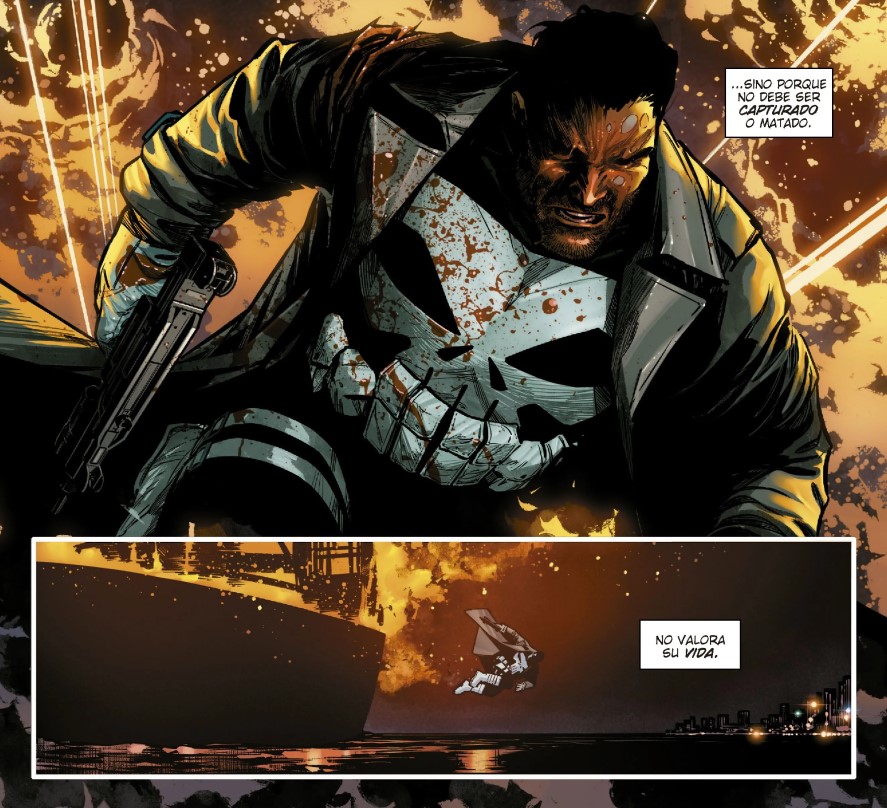 Por eso, ¿es esto una reinvención radical del Castigador? No. Y tampoco lo necesita. Lo que hace este tebeo es algo quizá más importante: reafirmar quién es Frank Castle y qué tipo de historias funcionan mejor con él. No es un personaje para aventuras ligeras, ni para grandes eventos coloridos. Es un personaje para callejones, para almacenes en llamas, para habitaciones donde alguien va a morir y nadie va a hacer un discurso bonito al respecto. Percy y Ohta parecen tener eso clarísimo. También hay un punto interesante en cómo el cómic juega con la idea de “ver rojo”. No solo como referencia al sello Red Band o a la violencia explícita, sino como descripción del propio estado mental de Frank. Él ve rojo porque está herido, porque está enfadado, porque está perdido. Ve rojo porque el mundo que lo rodea es rojo. Y en ese mar de sangre y fuego, él es tanto víctima como verdugo. En definitiva, esta primera grapa de El Castigador es un regreso contundente, sucio y sin complejos. Un cómic que recupera a Frank Castle como una fuerza de la naturaleza, más que como un simple antihéroe. Un primer número que mezcla violencia explícita, crimen urbano y una pizca de misterio sobre la identidad y el pasado reciente del protagonista. Y, sobre todo, una promesa: que esta serie no va a bajar el volumen, no va a limpiar la sangre y no va a pedir perdón por ser lo que es. Si buscas un Castigador que vuelva a oler a pólvora, a hierro y a asfalto mojado, aquí lo tienes. Si buscas sutileza, discursos morales o redenciones luminosas mejor mira en otro lugar. Porque Frank Castle ha vuelto. Y cuando Frank Castle vuelve, nadie duerme tranquilo en Nueva York.