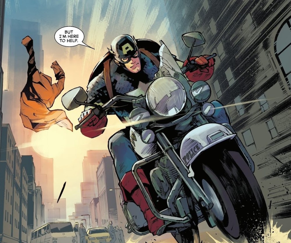 Este tomo utiliza la figura de Steve como “hombre fuera del tiempo” de una manera que va más allá del simple choque cultural. Aquí no se trata solo de que no entienda los móviles modernos o las nuevas costumbres, sino de que sus valores chocan frontalmente con un mundo que parece funcionar con otras reglas. Steve sigue creyendo en conceptos relativamente simples. Proteger a los inocentes, hacer lo correcto o asumir la responsabilidad de tus actos. El problema es que el mundo que se encuentra es todo menos simple. Y esa tensión recorre cada página del tebeo.