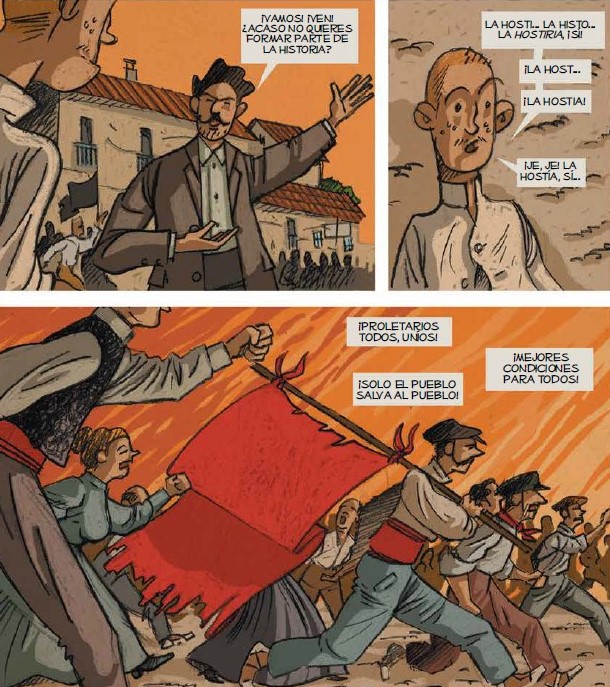 Peidro toma una decisión muy inteligente al no convertir este tebeo en la historia de un único héroe o en la crónica de un personaje excepcional. Aunque hay figuras que articulan el relato, la verdadera protagonista es la colectividad. El cómic habla de un pueblo, de una clase social, de un conjunto de personas empujadas al límite. Esa elección refuerza la idea de que la revuelta no nace de un arrebato individual, sino de una acumulación de injusticias que acaba siendo insoportable. No es un estallido caprichoso: es una consecuencia.