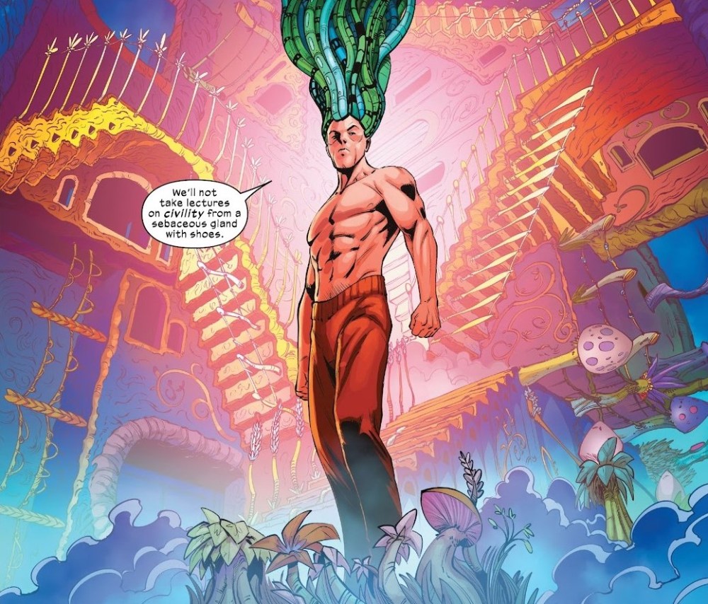 Spurrier estructura la historia casi como una sesión de terapia psicodélica dentro de la mente de Legión, con Rondador Nocturno intentando encontrar sentido espiritual y ético a un problema que, en el fondo, no se puede resolver solo a base de puñetazos. Bob Quinn acompaña bien este tono con un dibujo que sabe ser caótico cuando toca y más íntimo cuando la escena lo necesita. No es un despliegue de espectacularidad al estilo blockbuster, pero sí un trabajo eficaz para transmitir esa sensación de que algo está profundamente mal, de que Krakoa puede enfermar desde dentro. Onslaught, aquí, funciona menos como villano y más como símbolo de culpa y de herencia tóxica, y esa es probablemente la mejor decisión creativa del arco.