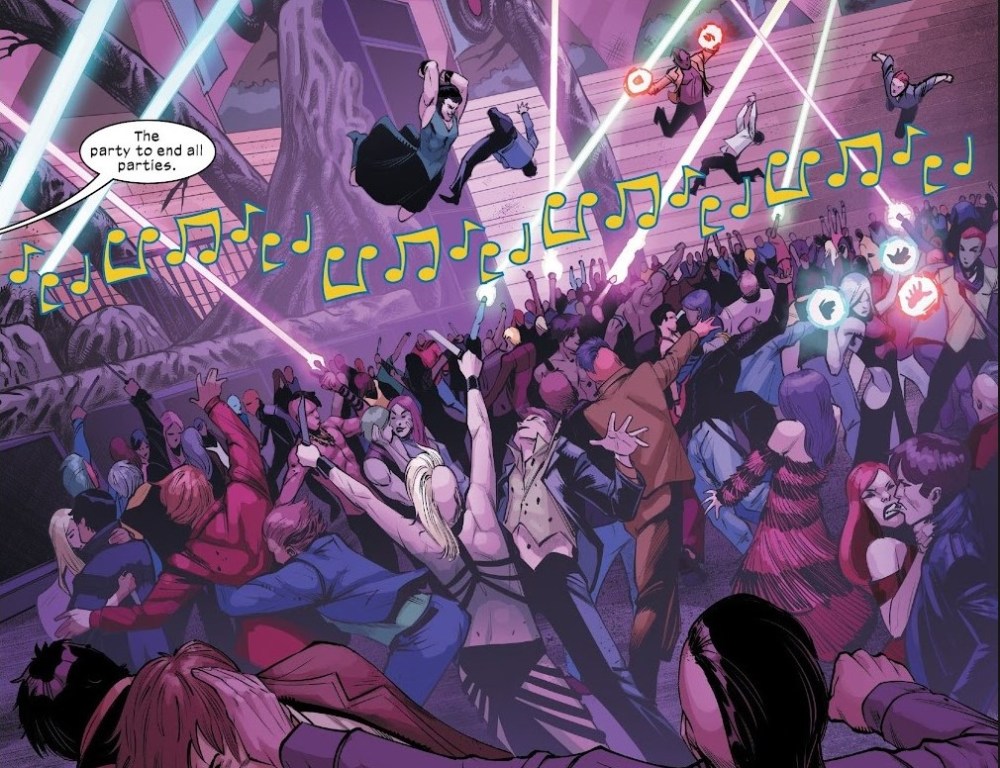 El cuarto frente es X-Corp #3-4, también de Tini Howard, con dibujo de Valentine De Landro, Alberto Foche y otros artistas. Aquí el enfoque cambia radicalmente. Pasamos del horror psicológico y la épica superheroica al culebrón corporativo mutante. Jamie Madrox como jefe, Monet en modo ejecutiva implacable o Selene jugando a ser tiburón financiero inmortal. La premisa es tan extraña como, en algunos momentos, sorprendentemente divertida. Es cierto que algunas ideas de base resultan un poco endebles, pero cuando la serie se centra en intrigas empresariales, compras hostiles y juegos de poder, encuentra una voz propia. Howard demuestra aquí que tiene buen pulso para escribir personajes moralmente ambiguos, y la química entre Monet y Selene es, sin duda, uno de los mayores atractivos de la serie. El montaje tipo Ocean’s Eleven en el que maniobran para hacerse con el control de los accionistas es probablemente lo mejor del arco. El gran problema de X-Corp, y en parte de toda la línea, es el de las apuestas dramáticas. Krakoa es tan poderosa (controla resurrección, tiene un peso económico y político enorme, y ahora incluso juega con la idea de dominar infraestructuras clave) que cuesta creer que una empresa rival pueda suponer una amenaza real. Cuando no hay peligro tangible, el conflicto corre el riesgo de reducirse a juegos de ego y humillaciones públicas. Aun así, como experimento de “capitalismo mutante”, la serie aporta un ángulo distinto y necesario a la idea de nación krakoana.