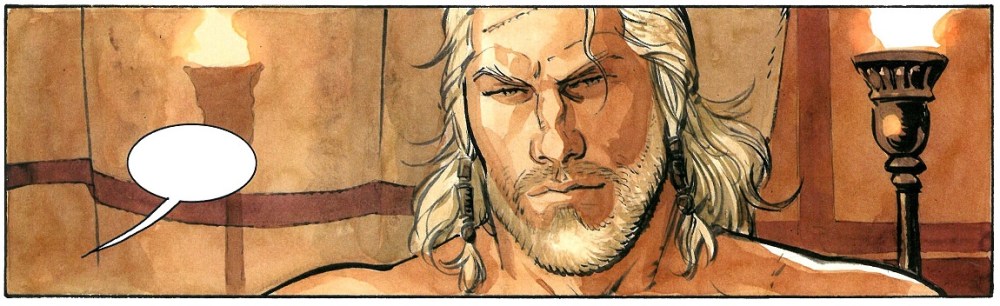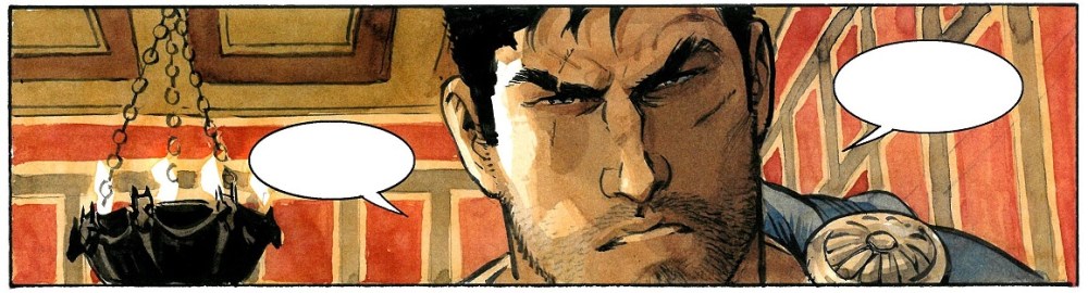 Mientras tanto, en la Roma que ha sobrevivido a Augusto, las conspiraciones no dejan de cocerse a fuego lento. Tanto las que son una amenaza al Imperio, como las que suponen poner en jaque al nuevo emperador, Tiberio, en una hoguera de ambiciones letal. Ese es el contexto que nos dibuja Marini, bien documentado en lo conceptual y excepcionalmente perfilado en unas viñetas que seducen por su plasticidad. Por la habilidad del autor para secuenciar con efectiva maestría lo que cuenta. Con un trazo, que si se observa con detenimiento, se aprecia mas suelto, menos acabado que en entregas previas pero cargado de una vitalidad y movimiento mayor. Capturando en cada página la tensiones, peligros, ambiciones, sexo, violencia y conspiraciones que muestra. Atrapando al lector conforme recorre el álbum, que queda seducido con las dos efectivas armas que posee esta entrega: un guion cada vez más férreo y compacto, y un arte sublime.