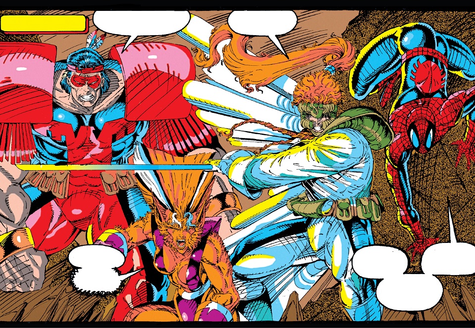 Gráficamente, el tomo ofrece bastantes momentos de contraste. Por ejemplo, cuando aparece Mike Mignola, las sombras se densifican y el ambiente adquiere un aire casi gótico. Es como si alguien bajara el volumen y encendiera una luz dramática. El joven Greg Capullo deja entrever la potencia artística que desarrollará años después. Y el cruce horizontal con Spider-Man dibujado por Todd McFarlane es puro espectáculo: dos números en formato apaisado porque la palabra “normal” no estaba en el diccionario creativo de la época.