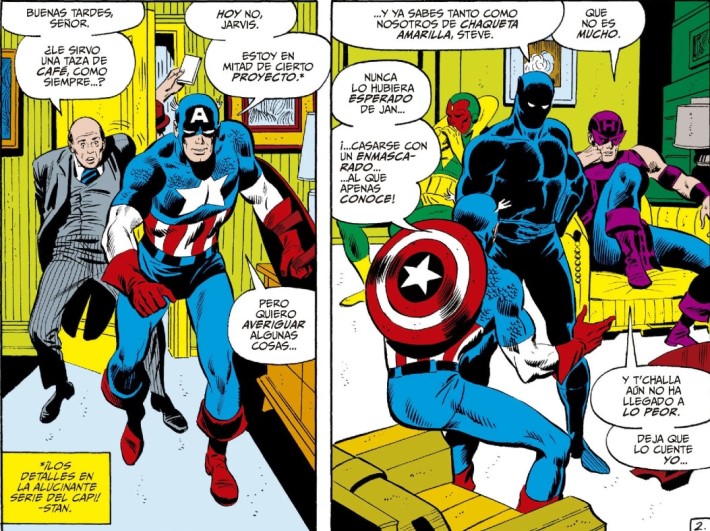 Todo arranca con el número de The Avengers #60, donde el Universo Marvel se pone sus mejores galas para asistir al enlace entre la Avispa y Chaqueta Amarilla. Janet y Hank deciden formalizar lo suyo, que en el mundo superheroico equivale a anunciar públicamente: “Villanos, este es vuestro momento”. El guion de Roy Thomas convierte lo que podría haber sido una simple anécdota romántica en un evento coral gigantesco. Thomas entiende que una boda no es solo un intercambio de votos; es un escaparate del universo entero. Así que llena la Mansión de los Vengadores hasta los topes de héroes, secundarios y tensiones latentes. Y claro, donde hay tantos supertipos juntos, también hay egos, secretos y enemigos (el jefe de pista y el circo del crimen entre otros) con ganas de arruinar el pastel. En el siguiente número Thomas juega a los Vengadores con Stephen Extraño, Surtur y Ymir lo que sería una aventura clásica en toda regla que se podría desarrollar en Asgard. Luego pasamos por un pequeño numero que implica a Pantera Negra y M´Baku con el traje prohibido del gorila blanco. Y como colofón nos deja con el Espadachín ese personaje que para muchos de nosotros tiene un lugar especial en el corazoncito.