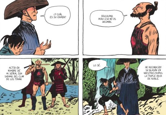 En paralelo conocemos a Kaede, hija de un señor derrotado y retenida como rehén en territorio enemigo. Su vida es una prisión elegante: vive vigilada, humillada, reducida a pieza de negociación. Sin embargo, lejos de ser un personaje pasivo, Kaede demuestra una inteligencia estratégica y una resistencia interior que la convierten en uno de los grandes pilares del relato. Cuando logra evitar un matrimonio forzado y termina prometida a Shigeru, su destino queda sellado dentro de una red política que no controla. El tebeo alterna ambas trayectorias con un ritmo medido, casi ceremonial. No hay prisa. Cada escena se construye con calma, permitiendo que los silencios pesen tanto como los diálogos. Melchior entiende que la fuerza del material está en la atmósfera y no sacrifica esa densidad por dinamismo superficial.