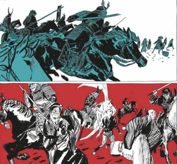 Quizá lo más interesante de este tebeo es cómo transforma la historia de Takeo. El primer tomo funciona casi como introducción de personajes y mundo; este segundo volumen los obliga a confrontarse con sus contradicciones. La trama se vuelve más densa, más introspectiva, más política. El traidor no es solo un enemigo en el campo de batalla, sino una idea que habita dentro de cada personaje. No es un cómic ligero ni impulsivo. Requiere atención, volver a páginas, detenerse en una viñeta. Como ocurre con muchas obras donde lo no dicho pesa tanto como lo dicho, el lector debe participar activamente, interpretar silencios, completar frases que nunca se escriben. Esta es una calidad, no un defecto: invita a la relectura, al estudio, a la contemplación.