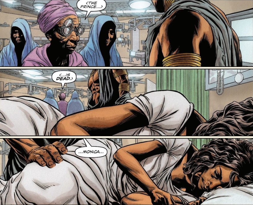 Mientras tanto, la historia introduce otro personaje clave: Monica Lynne, antigua reina de Wakanda y una de las piezas más importantes del conflicto dinástico. Su presencia aporta una dimensión más personal a la historia. No estamos solo ante una lucha política o ritual; estamos viendo las consecuencias de decisiones íntimas, secretos familiares y alianzas incómodas. La revelación más explosiva del número gira precisamente en torno a ese secreto. El linaje de Ketema no es lo que parecía. La historia sugiere que la línea de sangre del heredero está ligada de forma inesperada a Everett Ross, lo que convierte la lucha por el trono en algo mucho más complejo que una simple disputa familiar. Wakanda deja de ser solo un escenario político para convertirse en un tablero lleno de piezas movidas durante décadas.