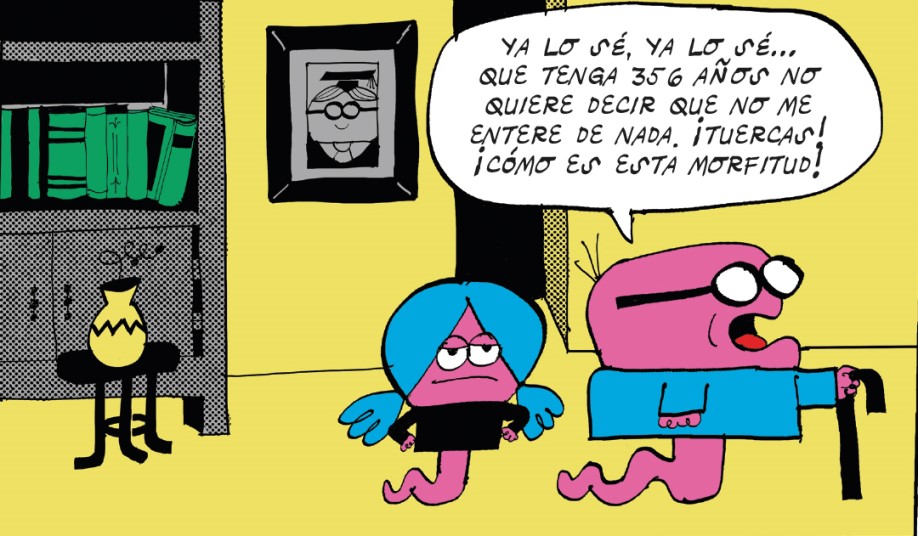 También hay ternura. Mucha. Aunque el humor sea absurdo y a veces un poco escatológico, el cómic tiene un corazón enorme. La relación entre Oliveta y su abuelo aporta calidez a la historia. El pueblo morfi, con sus discusiones eternas y sus decisiones colectivas absurdas, transmite una sensación muy agradable de comunidad. Incluso el conflicto con Pelusso tiene ese aire de amenaza relativamente amable que permite que todo siga siendo divertido en lugar de inquietante. Otro detalle muy interesante es cómo el cómic celebra la imaginación infantil. No intenta simplificar el mundo para los niños; al contrario, lo vuelve más extraño. Los objetos tienen propiedades ridículas, los personajes dicen palabras inventadas y las soluciones a los problemas rara vez siguen una lógica adulta. Ese espíritu conecta con algo fundamental: los niños no necesitan historias excesivamente racionales para disfrutar. De hecho, muchas veces prefieren lo contrario. Prefieren mundos donde un huevo puede contener misterios y nadie se escandaliza demasiado.