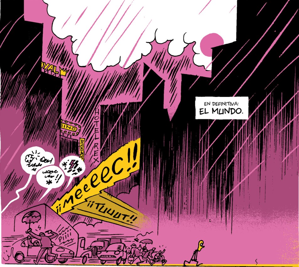Lo brillante de Brocal es cómo convierte esta premisa absurda en una sátira afilada del mundo editorial. Y lo hace sin ponerse pesado, que es lo difícil. Aquí no hay sermones sobre lo mal que está la industria ni discursos de autor incomprendido mirando al horizonte. Lo que hay es humor, ironía y situaciones que rozan lo ridículo pero que, si rascas un poco, tienen más verdad de la que nos gustaría admitir. Porque sí, en el fondo esta historia va de eso: de lo complicado que es crear, de lo fácil que es que tu trabajo se pierda en un limbo (muy parecido al del protagonista, por cierto) y de esa sensación tan universal de que has hecho algo bueno, pero nadie parece haberse dado cuenta. Y Brocal lo cuenta con una sonrisa traviesa, como quien lanza una pulla y se esconde detrás de un chiste. Además de romper la cuarta pared nos introduce desde las primeras viñetas en la vida de este pobre creador.