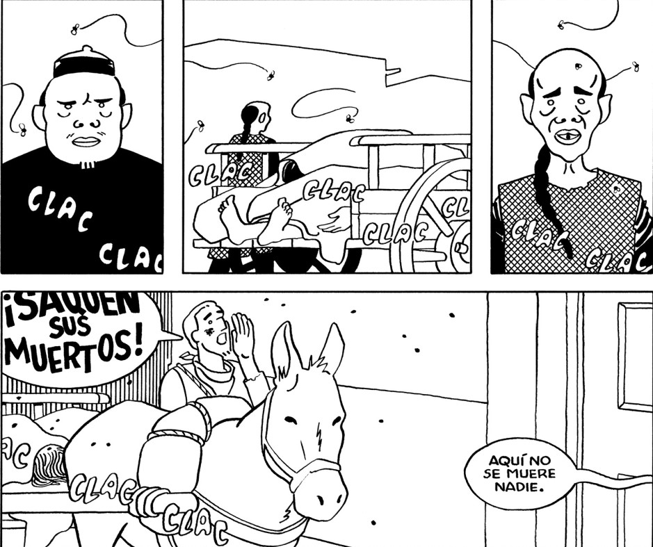 Así que se quedan los de siempre. Los que no tienen a dónde ir, los que no tienen dinero o los que no pintan nada en la historia oficial. Y ahí es donde entra nuestro protagonista Juan “El Chino” por descarte y por pura resistencia. Porque no es que sea un elegido ni un tipo especialmente brillante, es que está sano. En una ciudad donde la salud es un lujo, eso lo convierte automáticamente en alguien importante. Su trabajo, si se le puede llamar así, consiste en moverse entre los vivos y los muertos, recoger lo que nadie quiere tocar y hacer lo que haga falta para seguir respirando un día más. Pulido construye a Juan como un personaje incómodo, lleno de zonas grises. No es un santo, pero tampoco un demonio. Es práctico. En un mundo que se desmorona, la practicidad pesa más que cualquier código moral. Sus decisiones no siempre son bonitas, pero casi siempre son comprensibles, y ahí está la trampa. Te ves entendiendo cosas que, en otro contexto, te parecerían inaceptables. El cómic no te obliga a justificarlo, pero sí a mirarlo de frente.