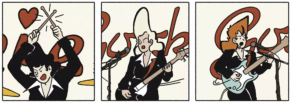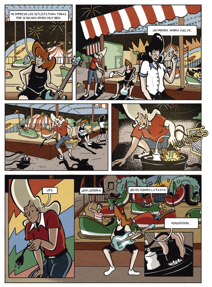 Todo esto está en este tebeo iniciático. Contado con desparpajo y mucho humor. Que huele a 2026 y, a la vez, tiene ecos de tradición rock y de la iconografía propia de las bandas de garaje. Trazadas por un estilo gráfico donde concluye Hergé con el Max de Peter Punk. Donde muchos sonreirán cuando las vean llegar al Bar de Jo, escenario de una de las mejores nocheviejas que ha vivido el arriba firmante, pero eso es otra historia.