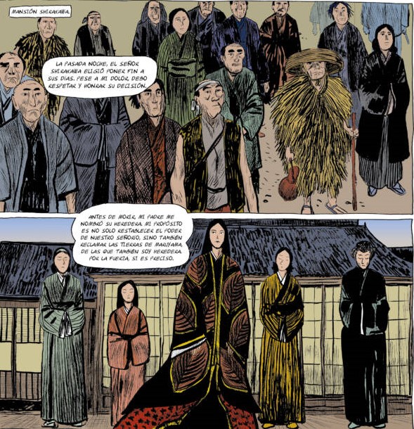 Otro de los grandes aciertos del volumen es cómo maneja el tema del poder. Kaede no solo quiere sobrevivir; quiere imponerse, ser reconocida como líder en un mundo que constantemente la cuestiona. Pero el poder tiene un precio, y el cómic no se lo ahorra. Cada paso hacia adelante implica una renuncia, una pérdida, una carga adicional. No hay victorias limpias, y eso le da al relato una profundidad que va más allá de la simple aventura. Takeo, en cambio, representa el reverso de esa moneda. Mientras Kaede asciende, él se hunde. No en términos de relevancia, sino de libertad. Su camino es el de alguien atrapado en una red que se estrecha con cada movimiento. Y lo más interesante es que, a pesar de todo, sigue avanzando. No por convicción, sino por inercia, por necesidad, por esa mezcla de deber y desesperación que lo define en este punto de la historia.