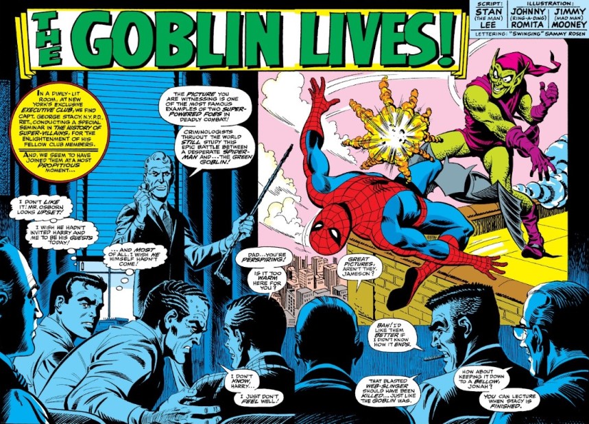 La función arranca con el segundo magazine de The Spectacular Spider-Man, donde Stan Lee y John Romita Sr. cocinan a fuego lento con uno de los ingredientes más sabrosos del personaje: la paranoia. Porque el regreso de Norman Osborn no es solo una excusa para repartir mamporros, sino una bomba que lleva meses gestándose. Peter está nervioso, inseguro, constantemente al límite… y nosotros con él. Hay una sensación de amenaza latente que recorre cada página, como si en cualquier momento todo fuese a estallar. Y cuando finalmente lo hace, lo hace con ese dramatismo tan marca de la casa: directo, intenso y sin medias tintas.