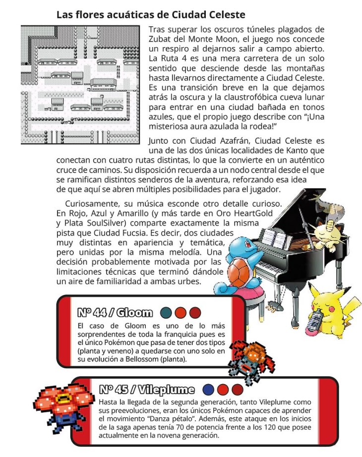 El resultado es un primer tramo algo denso y descompensado, donde se acumula mucha información en poco espacio y donde los cambios de foco pueden descolocar. Pero, curiosamente, también es ahí donde empieza a notarse uno de los mayores aciertos del libro: su tono. Porque a pesar de la cantidad de datos, la lectura no se vuelve árida. Hay una cercanía constante, una especie de complicidad con el lector que suaviza el golpe informativo. No te están dando una clase, te están contando una historia. Y eso marca la diferencia. A medida que avanzas, el libro encuentra un ritmo más natural. Las curiosidades empiezan a integrarse mejor, la estructura se vuelve más clara y la lectura fluye con bastante soltura. Y es aquí donde entra en juego una de las ideas más interesantes de la obra: la posibilidad de leerla como si estuvieras jugando. No es algo que se imponga explícitamente, pero todo en el libro parece diseñado para acompañar una partida. Cada sección coincide con momentos concretos del juego, cada explicación encaja con lo que verías en pantalla si tuvieras una Game Boy en las manos. Y claro, la mente hace el resto. Empiezas a recordar rutas, ciudades, combates. Escuchas mentalmente las músicas, reconstruyes escenarios, revives sensaciones. Lo que era una lectura se convierte en una experiencia interactiva, casi como si el libro fuera una especie de guía emocional más que técnica. No te dice cómo jugar, sino por qué lo que estás viendo es como es. Y eso, en un juego que muchos creíamos conocer de memoria, resulta sorprendentemente revelador.