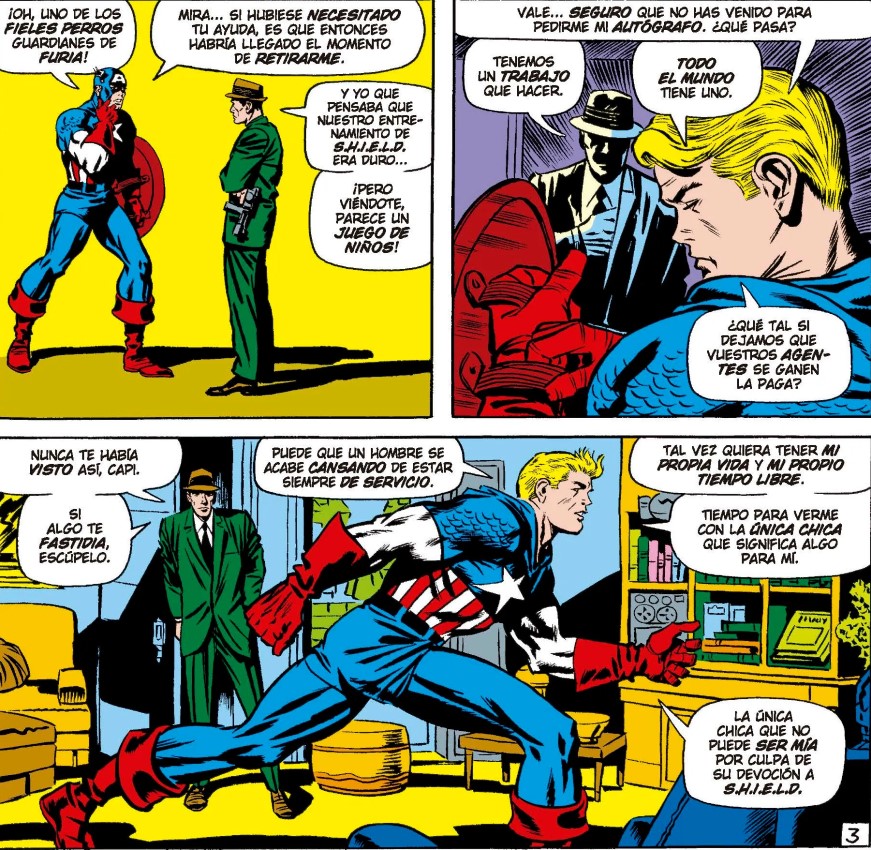 Por supuesto, el Capi vuelve. No nos engañemos, nadie se queda muerto mucho tiempo en estos cómics. Pero el camino hasta ese regreso está lleno de giros, trucos y momentos memorables que hacen que todo merezca la pena. Y aquí es donde el tomo brilla de verdad: en el contraste. Por un lado, tienes la etapa Lee-Kirby, con su clasicismo, su solidez y su encanto algo anticuado. Por otro, tienes a Steranko, que llega para romper las reglas y demostrar que el cómic de superhéroes podía ser mucho más ambicioso. El resultado no es un bloque uniforme, pero tampoco lo necesita. Es más bien un documento vivo de una transición. Un momento en el que el medio empieza a cambiar, a experimentar, a arriesgar. Y eso, aunque a veces sea irregular, es muchísimo más interesante que la perfección.